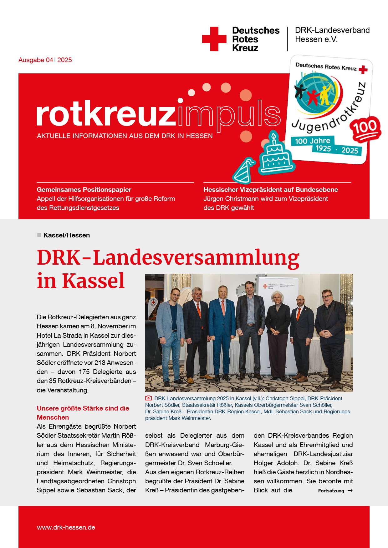 Der DRK-Landesverband Hessen e.V. informiert mit seinem Quartalsmagazin RotkreuzImpuls alle haupt- und ehrenamtlichen Rotkreuzler über die neuesten Entwicklungen in der hessischen Rotkreuzwelt. Ein Schwerpunkt neben den Berichten aus der Vereinsarbeit sind Beiträge zum Thema „Best practice“, um den Lesern mit Tipps und Tricks die tägliche Arbeit zu erleichtern.